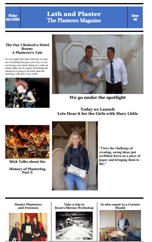 Whether you are a first day apprentice or a Master Plasterer, I hope you will find the magazine of interest.