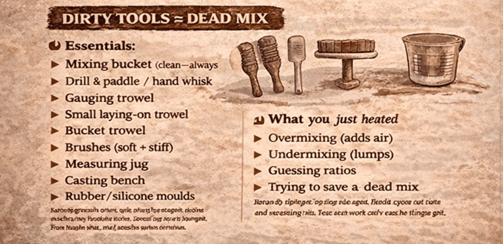 This first part is about foundations: the tools you use, the mixes you knock up, and the small details that separate a clean run from a mess on the bench.