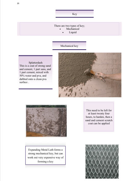 Keys There are two types of key;Mechanical and Liquid Plastering: Skills for Beginners This is a resource for Plastering Students, Teachers and DIY enthusiasts alike Visit the Plastering Books page