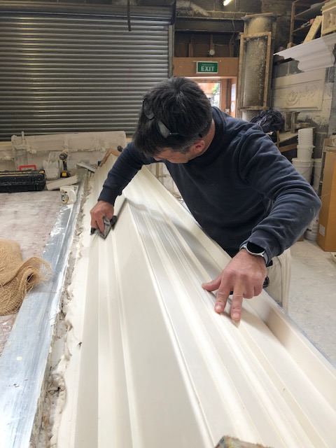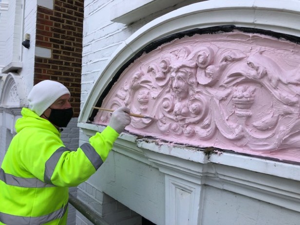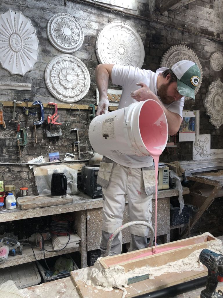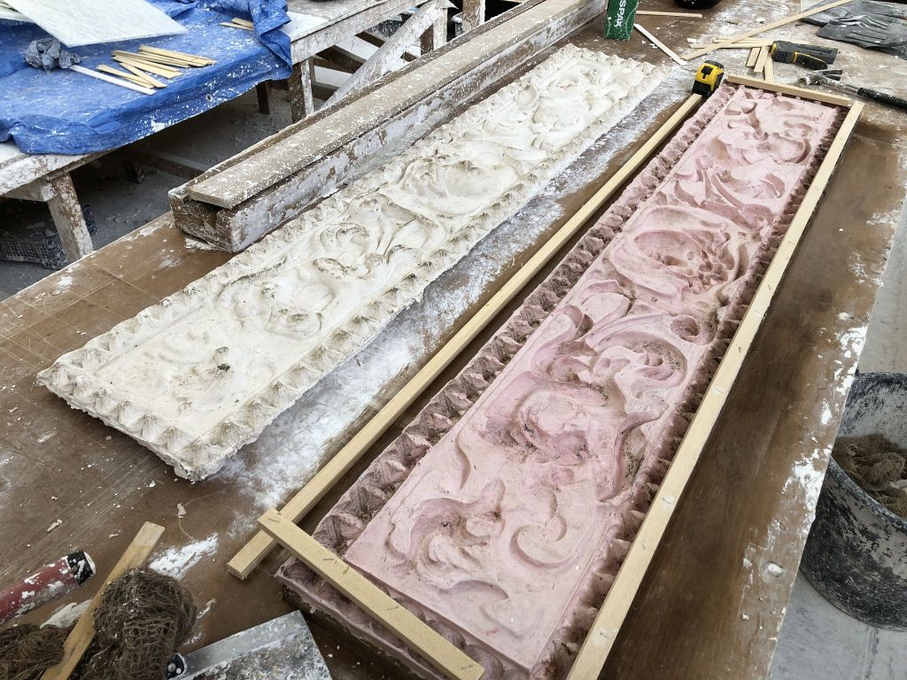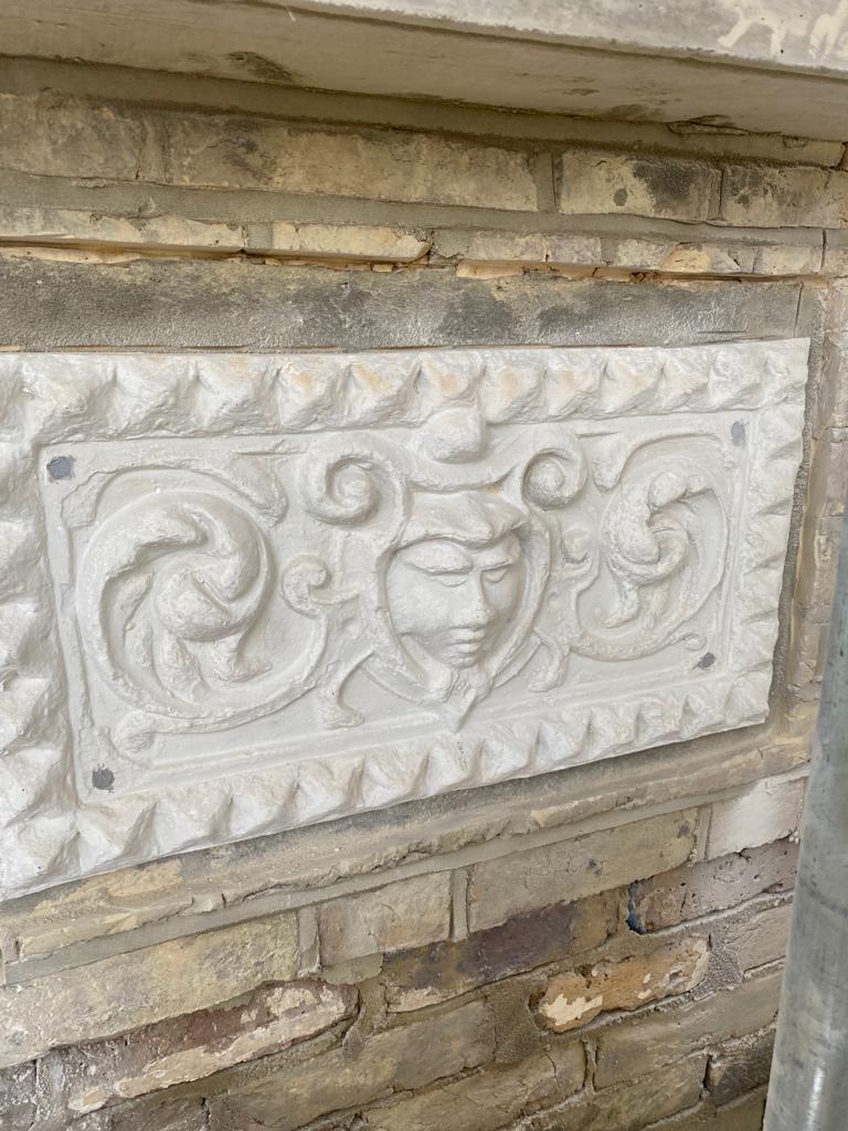 To do this, we needed to copy the plaques from nearby houses. We had to go “cold calling,” which means knocking on neighbours’ doors and asking them for help. We asked if we could make moulds of their plaques using silicone. This way, we could recreate the lost designs exactly.