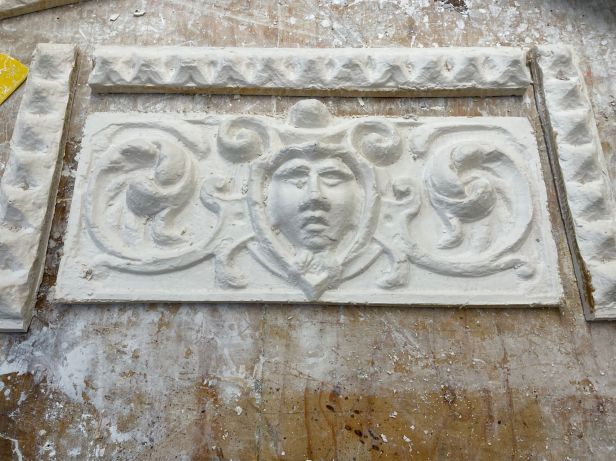 The house we were working on had lost its plaques when a new fascia was installed. Our job was to make new plaques that looked just like the originals, so the street would still look the same.