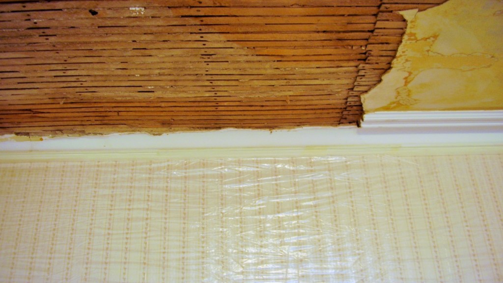 Then we strips off the plaster from the lath and plaster ceiling, and gave the laths a very good clean removing all dust and any bits of plaster, to ensure we managed to get a good key to the laths