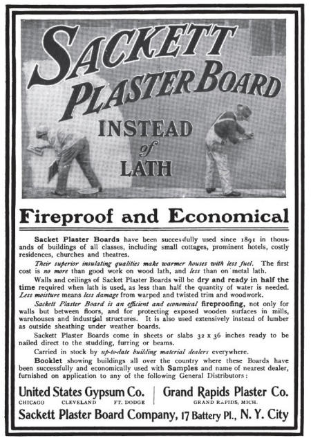 Sackett wanted to make building walls faster and cleaner. He created a board made of gypsum plaster placed between two sheets of heavy paper. This new board could be nailed directly to wall frames and was ready to use immediately. Sackett’s invention was called “Sackett Board.” It was strong, easy to handle, and didn’t crack easily. It also helped protect buildings from fire.