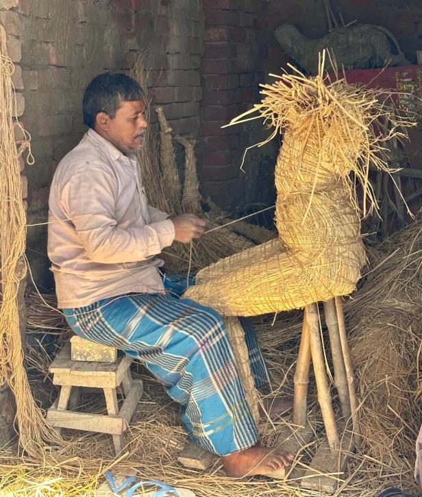 The process of creating this festival idol from unfired clay follows craft techniques passed on from generation to generation, relying almost entirely on natural materials and the skilled craftsmanship of Artisans.